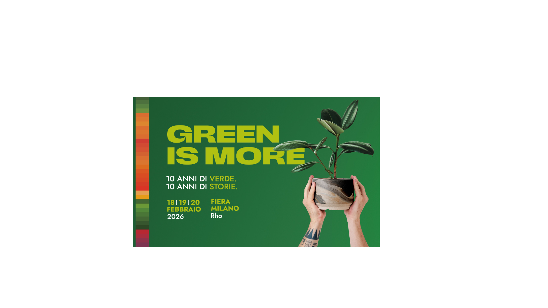 Myplant & Garden 2026 è la decima edizione della principale fiera internazionale del verde professionale in Italia, che si terrà a Fiera Milano Rho dal 18 al 20 febbraio 2026, ampliando la sua superficie a 60.000 mq e quattro padiglioni per celebrare il settore con focus su innovazione, sostenibilità, economia circolare e tecnologie avanzate per paesaggio, floricoltura e vivaismo, offrendo un'importante piattaforma di business e networking.